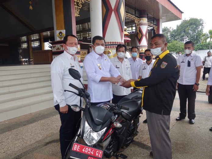 LAMPUNG TENGAH – Sebanyak 26 Unit Kendaraan Operasional Roda 2 dibagikan kepada Koordinator Gabungan Perkumpulan Petani Pemakai Air (GP3A) Kabupaten Lampung Tengah (Lamteng).